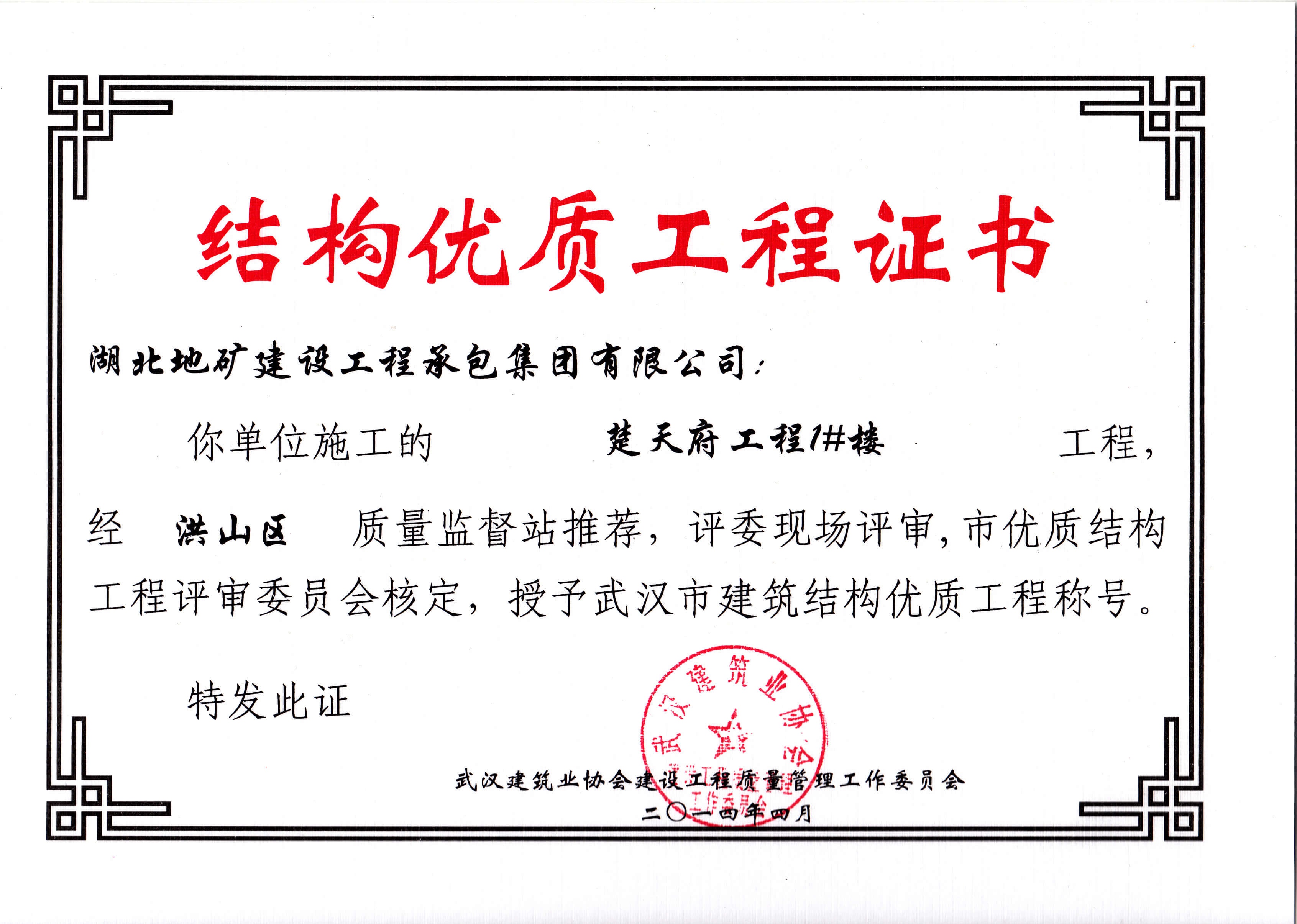 承包公司楚天府1#樓武漢市建筑結(jié)構(gòu)優(yōu)質(zhì)工程