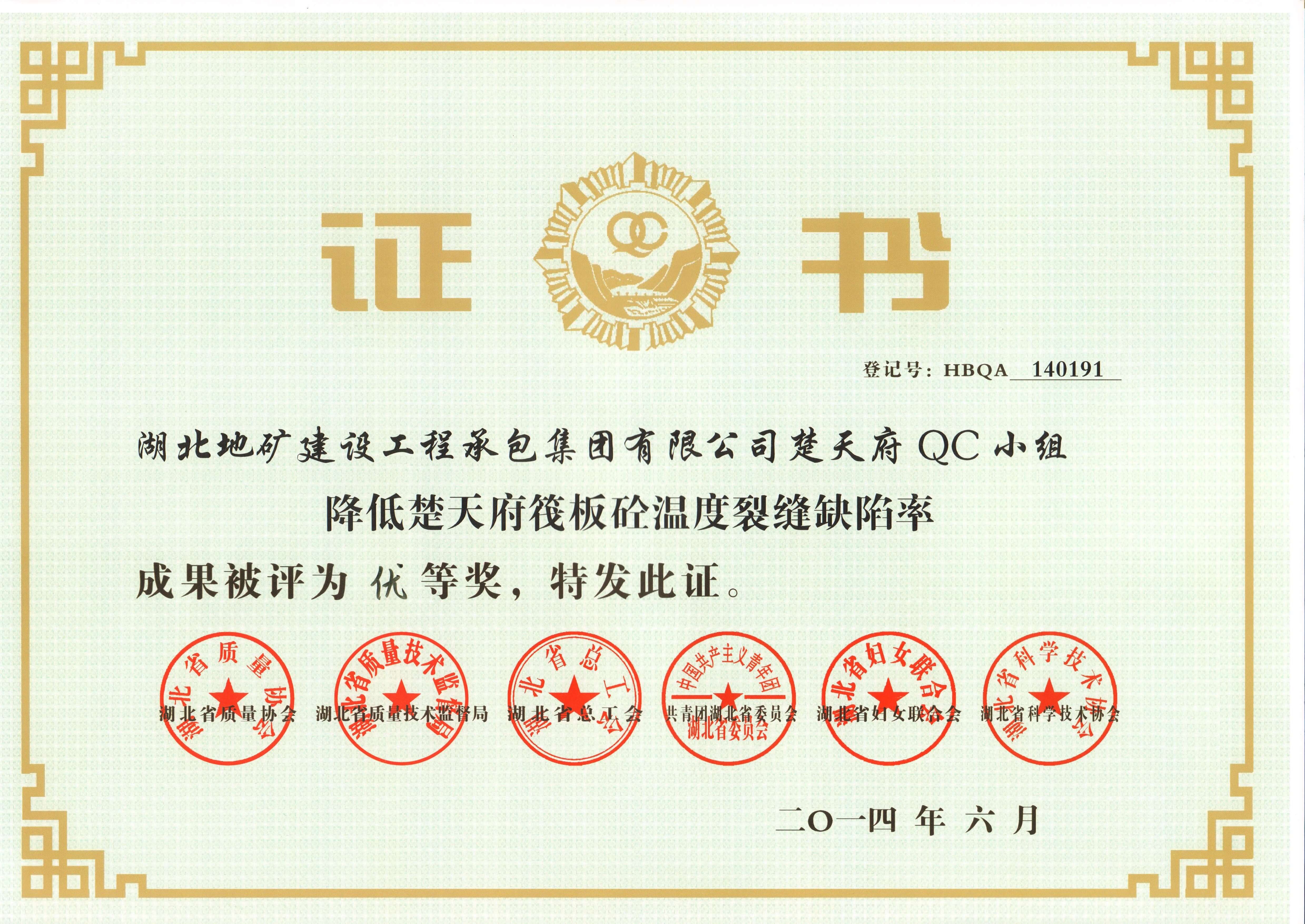 承包公司楚天府QC小組優(yōu)等獎(jiǎng)