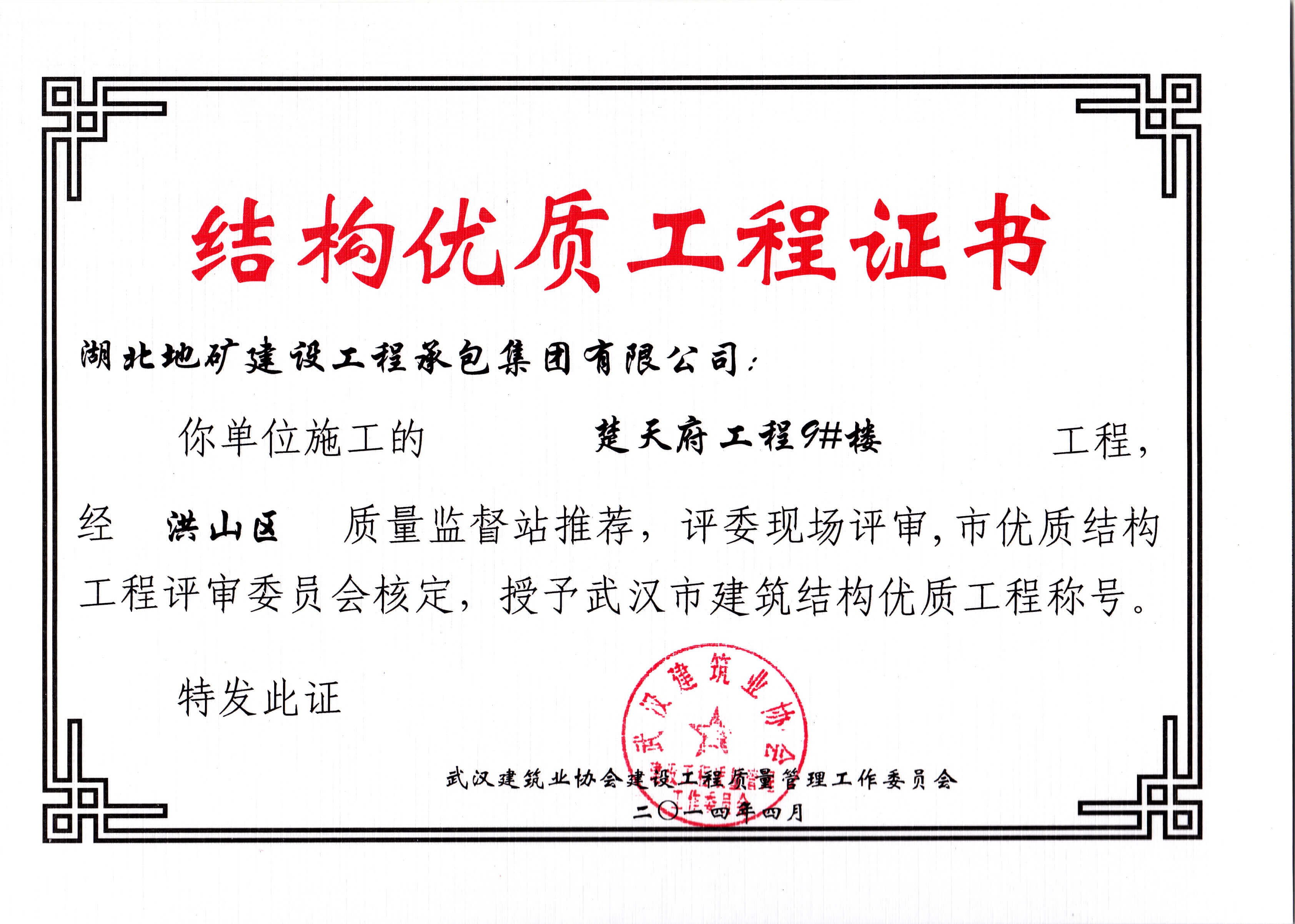 承包公司楚天府9#樓武漢市建筑結(jié)構(gòu)優(yōu)質(zhì)工程