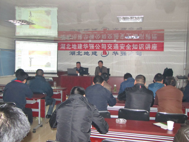 12月15日上午,湖北地建華強公司與承包公司共同舉辦了交通安全知識講座。講座特邀硚口大隊事故處理科唐警官授課,來自承包公司、武基公司、勘察公司、房地產(chǎn)公司、地勘部及華強公司的安全管理干部、專兼職駕駛員共40余人聆聽了講座。