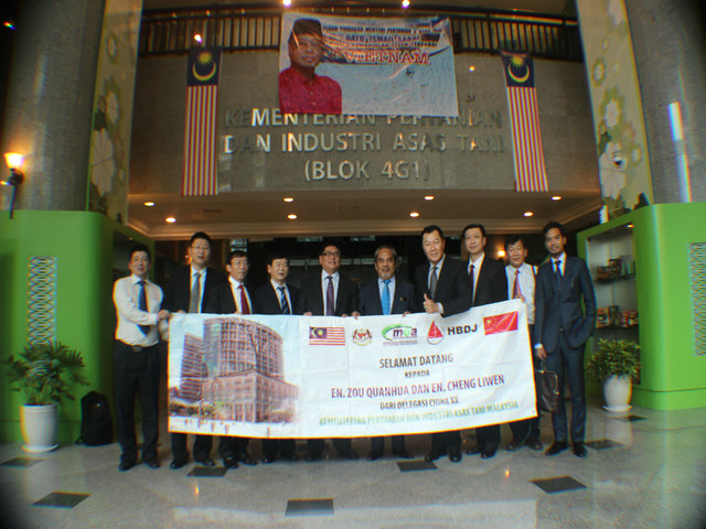 12月12日下午,應(yīng)馬來西亞農(nóng)業(yè)和農(nóng)基部副部長拿督達(dá)祖丁的邀請(qǐng),考察團(tuán)一行前往位于布城的馬來西亞農(nóng)業(yè)和農(nóng)基部總部進(jìn)行了考察拜訪和會(huì)談。拿督達(dá)祖丁首先對(duì)考察團(tuán)的到來表示熱烈地歡迎,隨后介紹了農(nóng)業(yè)和農(nóng)基部的職能以及雙方未來能夠合作的領(lǐng)域。鄒泉華處長和程立文總經(jīng)理首先對(duì)副部長的邀請(qǐng)表示了衷心的感謝,然后介紹了湖北地礦局和地建集團(tuán)的發(fā)展歷程和優(yōu)勢行業(yè),隨后對(duì)在馬投資的藍(lán)圖經(jīng)行了描繪。雙方在友好的氣氛中就有關(guān)在馬投資發(fā)展的問題深入交換了意見,達(dá)成了就公司投資土地購買、農(nóng)業(yè)基礎(chǔ)設(shè)施建設(shè)、農(nóng)業(yè)地質(zhì)技術(shù)服務(wù)、礦產(chǎn)資源開發(fā)等多個(gè)事項(xiàng)的共識(shí),為省地礦局、地建集團(tuán)在馬來西來獲得更好的發(fā)展奠定了基礎(chǔ)。會(huì)談結(jié)束后,副部長帶領(lǐng)考察團(tuán)參觀了農(nóng)業(yè)和農(nóng)基部農(nóng)產(chǎn)品發(fā)展展示中心。