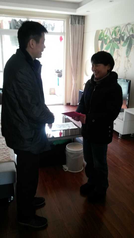 1月15日,在新春佳節(jié)來臨之際,集團工會主席王文斌、人力資源部科長馬海梅和武基公司工會副主席唐小紅一行來到漢口、漢陽兩地,慰問走訪了一部分困難職工和退休干部,為他們帶去了新春的祝福和節(jié)日的問候,并送上慰問金,把黨和領(lǐng)導(dǎo)的關(guān)懷和溫暖送到了他們的心坎上。