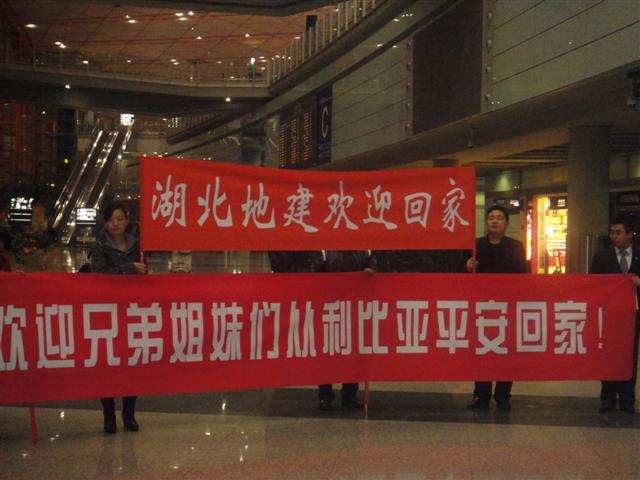 2月23日17時(shí)15分左右,中國政府派出的首架包機(jī)從北京首都國際機(jī)場出發(fā),開始執(zhí)行撤離中國在利比亞人員任務(wù)。在湖北省商務(wù)廳、湖北省地礦局的支持下,湖北地建集團(tuán)4名女員工乘坐首批撤離班機(jī)于2月25日凌晨2時(shí)許順利平安回國。
