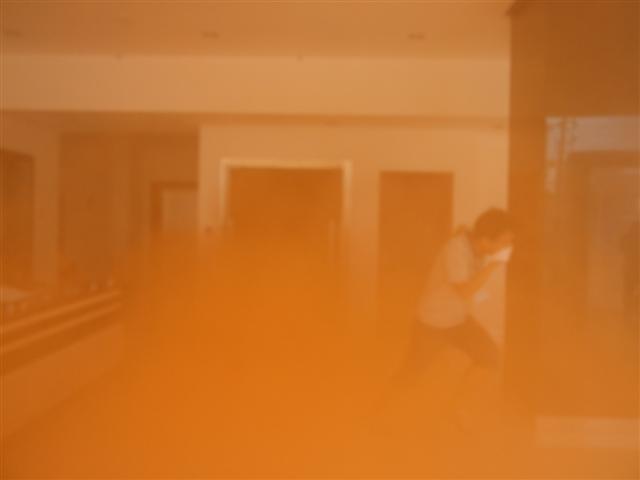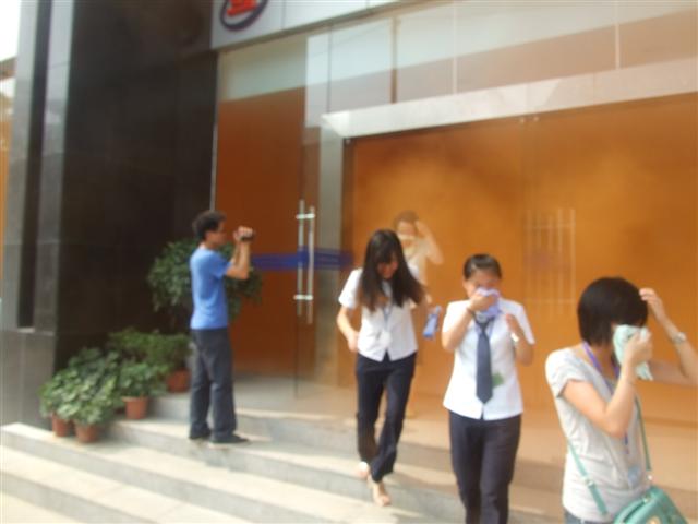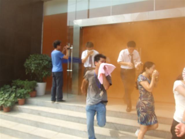 15時(shí)30分,演練活動(dòng)正式開(kāi)始,地建大樓二樓和六樓發(fā)生“火災(zāi)”,頃刻間濃煙滾滾,火勢(shì)迅速蔓延,有形成立體燃燒之勢(shì)。演練總指揮程立文同志在聽(tīng)取了警報(bào)組人員匯報(bào)的火情后,立即宣布啟動(dòng)地建大樓消防疏散逃生應(yīng)急預(yù)案。霎時(shí),警笛大作,相互提醒聲、疏散指導(dǎo)聲不斷。救援人員抬著“傷員”、攙扶弱者忙而有序;逃生人員濕巾掩鼻、低頭彎腰、手摸通道墻壁順勢(shì)而下,慌而不亂。不到10分鐘,所有人員安全撤到集合地點(diǎn)。