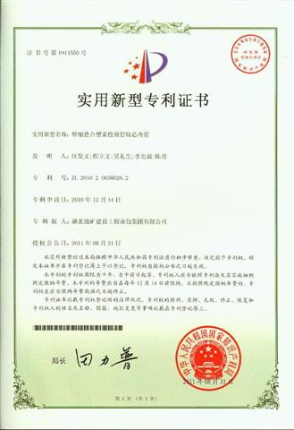 該專利是湖北地建集團2011年度繼“鉆孔灌注樁可回收吊筋結(jié)構(gòu)”、“自動單向閥式壓力注漿裝置”后取得的第3項實用新型專利。