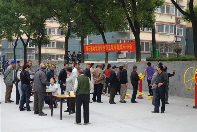 為豐富離退休老職工業(yè)余文化生活,促進(jìn)老同志身心健康,推動和諧基地建設(shè),2011年10月13至15日,黃石基地管理處分別在冶金隊小區(qū)、楠竹林小區(qū)和地質(zhì)里小區(qū)召開了老職工秋季趣味運動會?;毓芾硖?span lang="EN-US">300多名老同志滿懷愉悅的心情參加了擲飛鏢、投保齡球、套圈、夾玻璃球、雙扣等比賽項目。