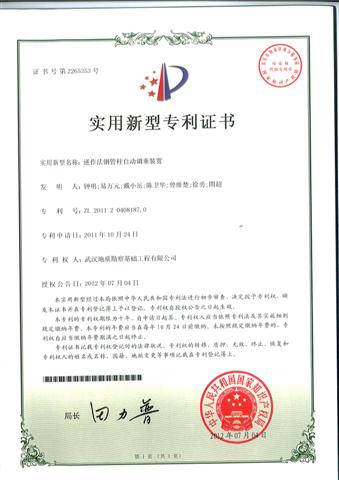 7月4日,武漢地質(zhì)勘察基礎(chǔ)工程有限公司申報(bào)的“地下連續(xù)墻接頭刷壁裝置”和“ 逆作法鋼管柱自動(dòng)調(diào)垂裝置”被國(guó)家知識(shí)產(chǎn)權(quán)局授予實(shí)用新型專利。
