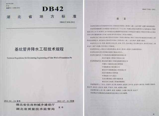 近日,我院參與編寫的湖北省地方標(biāo)準(zhǔn)《基坑降水工程技術(shù)規(guī)程》(DB42/T830-2012)和《鉆孔灌注樁施工技術(shù)規(guī)程》(DB42/T831-2012)經(jīng)湖北省住房和城鄉(xiāng)建設(shè)廳及湖北省質(zhì)量技術(shù)監(jiān)督局審查通過并批準(zhǔn)頒布實(shí)施。這二項(xiàng)湖北省地方技術(shù)標(biāo)準(zhǔn)正式頒布實(shí)施標(biāo)志著工程院在編寫技術(shù)標(biāo)準(zhǔn)方面有了重大的突破,可增強(qiáng)工程院在該技術(shù)領(lǐng)域的話語權(quán),提高社會知名度。