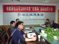 4月17日下午,湖北地建承包公司本部召開2009年度“安康杯”活動動員大會,公司領導、部門主管、直屬項目部經理、技術負責、專(兼)職安全員等近30名同志參加了會議。