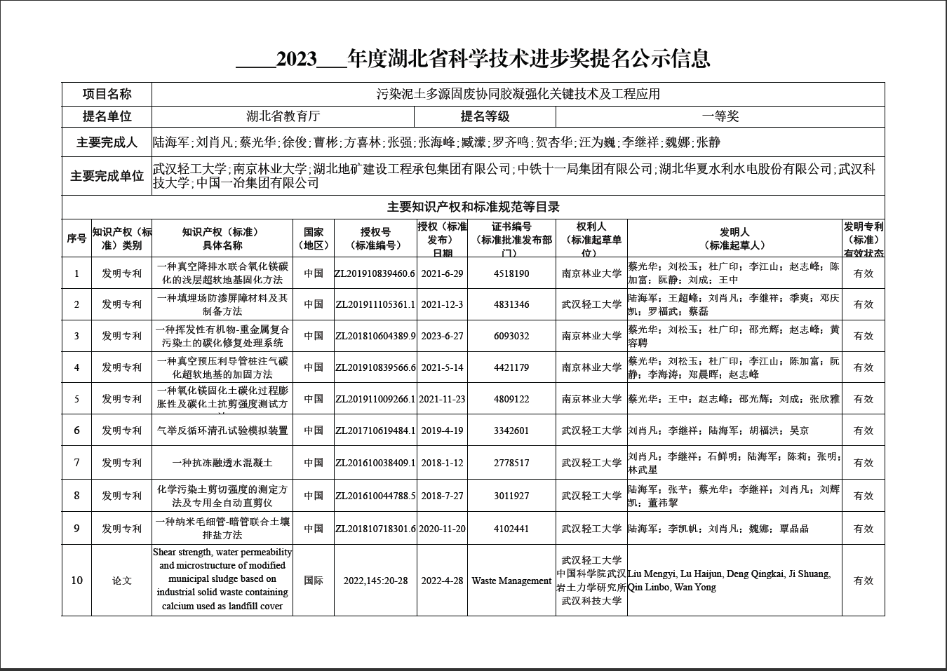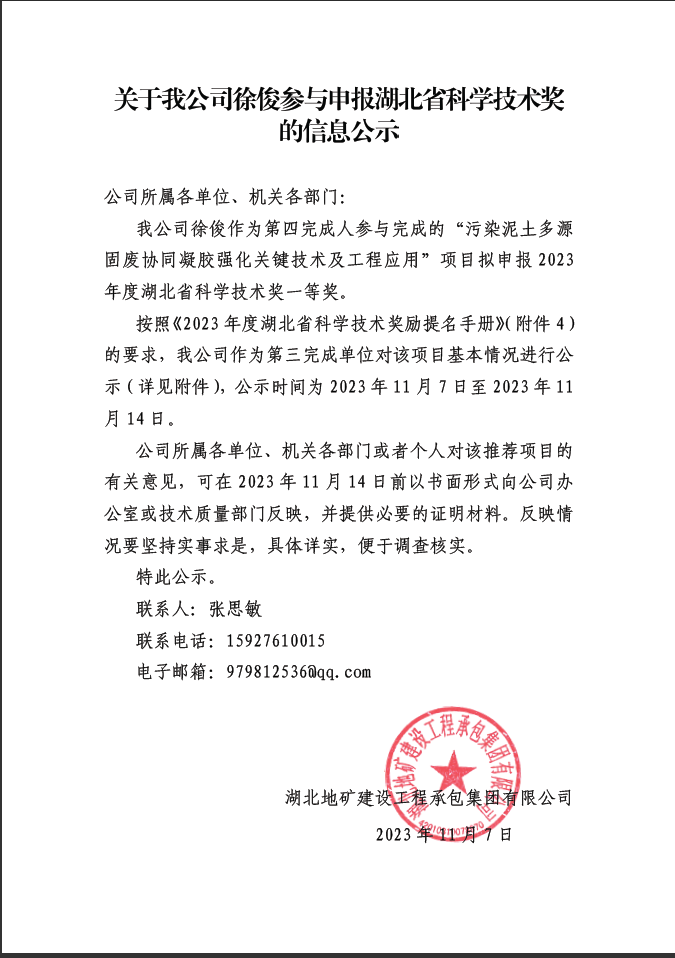 關(guān)于我公司徐俊參與申報湖北省科學(xué)技術(shù)獎的信息公示
