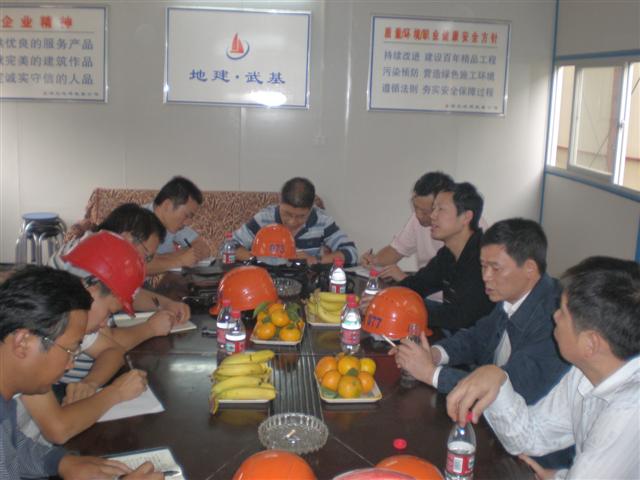 2009年10月26日下午,湖北省地礦局企業(yè)指導(dǎo)處處長鐘偉等一行來到湖北地建.武基公司施工的瑞安永清片A5地塊樁基施工項(xiàng)目檢查指導(dǎo)工作。檢查組對(duì)整個(gè)施工現(xiàn)場(chǎng)安全生產(chǎn)情況進(jìn)行了認(rèn)真細(xì)致的檢查,還針對(duì)如何做好和經(jīng)營好施工項(xiàng)目提出了一些寶貴意見,結(jié)合本施工項(xiàng)目規(guī)模大、施工現(xiàn)場(chǎng)人員多、設(shè)備多、工藝多、交叉作業(yè)多、集中施工時(shí)工作面小等特點(diǎn),在如何抓好安全生產(chǎn)方面提出了合理化建議。