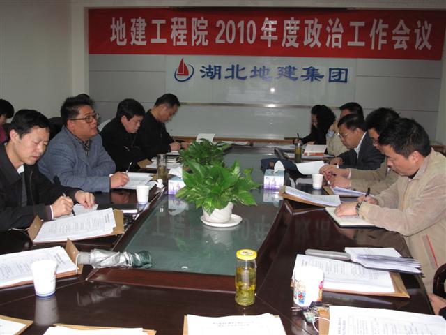 4月21日,湖北地建集團2010年政治工作會議在漢隆重召開,會議由集團紀委書記兼工會主席張鶴峰主持,參加會議的人員有地建集團黨政領導、集團下屬各單位黨總支(支部)書記、工會主席和機關部分科室負責人。