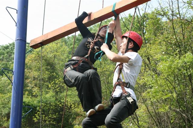 2010年4月24日,武基公司組織中青年員工在武漢蔡甸知音湖拓展基地開展第一期野外拓展活動(dòng)?;顒?dòng)設(shè)計(jì)的拓展項(xiàng)目有掌聲雨露、解人套、空中單杠、信任背摔、勇攀天梯、畢業(yè)墻等。整個(gè)拓展活動(dòng)中,大家團(tuán)結(jié)協(xié)作、相互鼓勵(lì),圓滿完成了拓展活動(dòng)的項(xiàng)目?jī)?nèi)容。特別是攀援高達(dá)4米的畢業(yè)墻,在沒有借助任何器械的情況下,大家團(tuán)結(jié)協(xié)作、甘為人梯、相互扶持,安全、順利的攀到了墻頂。