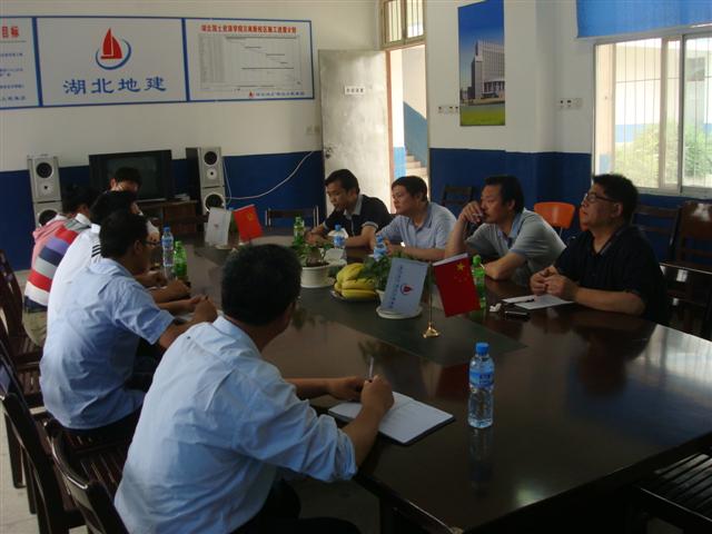 2010年5月26日,省地礦局副局長(zhǎng)曾環(huán)宇、工程地質(zhì)處處長(zhǎng)沈順照一行在湖北地建集團(tuán)總經(jīng)理程立文的陪同下,到承包公司湖北國(guó)土資源職業(yè)學(xué)院漢南項(xiàng)目部檢查指導(dǎo)工作。