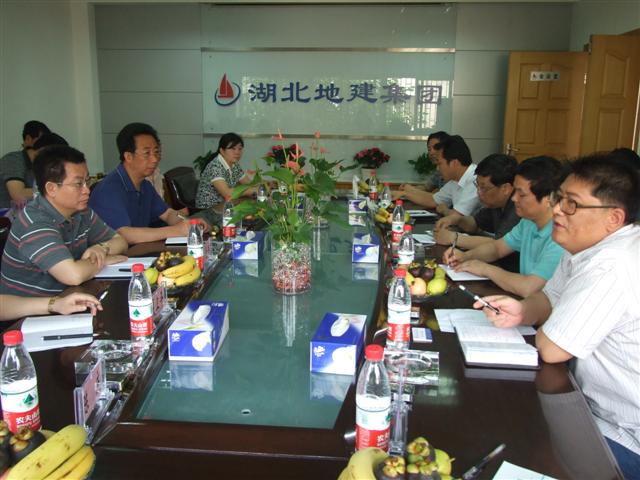 2010年6月2日,湖南省地礦局黨組書記、局長(zhǎng)葉愛斌一行12人在湖北省地礦局副局長(zhǎng)曾環(huán)宇、副巡視員葉明瑞、工程地質(zhì)處處長(zhǎng)沈順照、局辦公室主任李華等的陪同下到湖北地建集團(tuán)考察調(diào)研。集團(tuán)領(lǐng)導(dǎo)程立文、吳國(guó)才、吳賢亮、梅焱祥、易萬元、張鶴峰、陳少平參加了座談。
