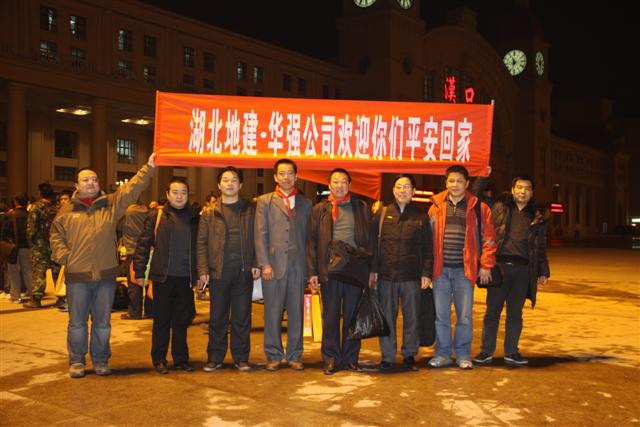 3月1日23時20分,華強公司領導親自帶隊到漢口火車站迎接駐利比亞員工平安回家,并為他們安排食宿。