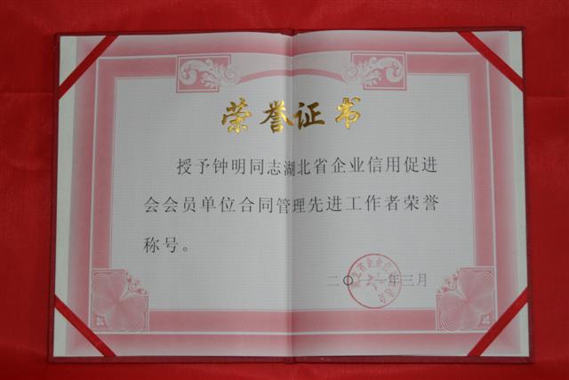近日,湖北省工商局、省企業(yè)信用促進(jìn)會在武昌洪廣大酒店聯(lián)合舉辦2011年度湖北省企業(yè)信用促進(jìn)理事會。武基公司作為企業(yè)會員單位參加了會議,公司總工程師鐘明被評為“湖北省企業(yè)信用促進(jìn)會會員單位合同管理先進(jìn)工作者”榮譽(yù)稱號。