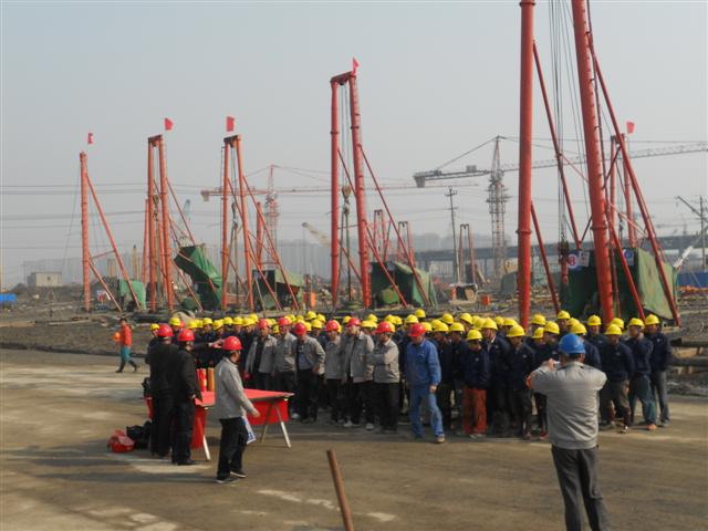 2011年3月23日,上海分公司承接的杭州鐵路東站樞紐廣場(chǎng)區(qū)塊配套設(shè)施項(xiàng)目舉行了盛大的開工慶典儀式,分公司經(jīng)理陳建良、副經(jīng)理汪立文、總工程師夏焰光應(yīng)邀參加了慶典。