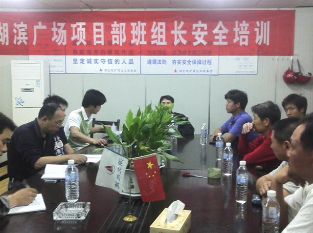 為牢固樹立安全生產(chǎn)管理理念,堅持“安全第一、預(yù)防為主”的安全管理方針,2011年5月11日晚上,大冶湖濱廣場項目部對班組長進行了安全管理知識培訓(xùn)。