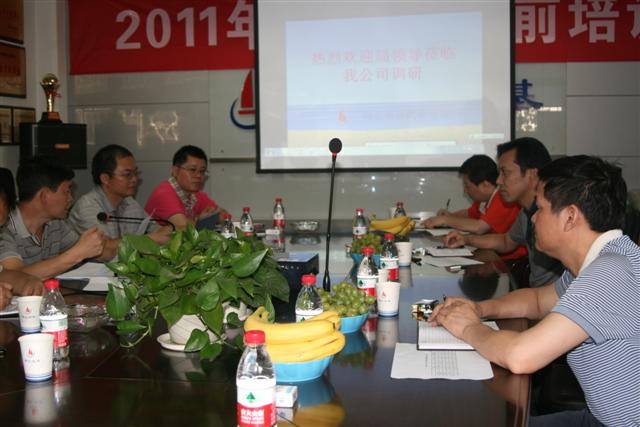 2011年8月4日上午,省地礦局副局長(zhǎng)曾環(huán)宇、工程地質(zhì)處處長(zhǎng)沈順照一行到武基公司調(diào)研。調(diào)研組認(rèn)真聽取了武基公司近幾年經(jīng)營(yíng)發(fā)展情況及2011年1 -7月工程院下達(dá)工作目標(biāo)完成情況的匯報(bào),詳細(xì)了解了武基公司人員編制和外協(xié)隊(duì)伍情況、管理機(jī)構(gòu)設(shè)置和分工情況、設(shè)備資產(chǎn)現(xiàn)狀和經(jīng)營(yíng)市場(chǎng)細(xì)分情況。
